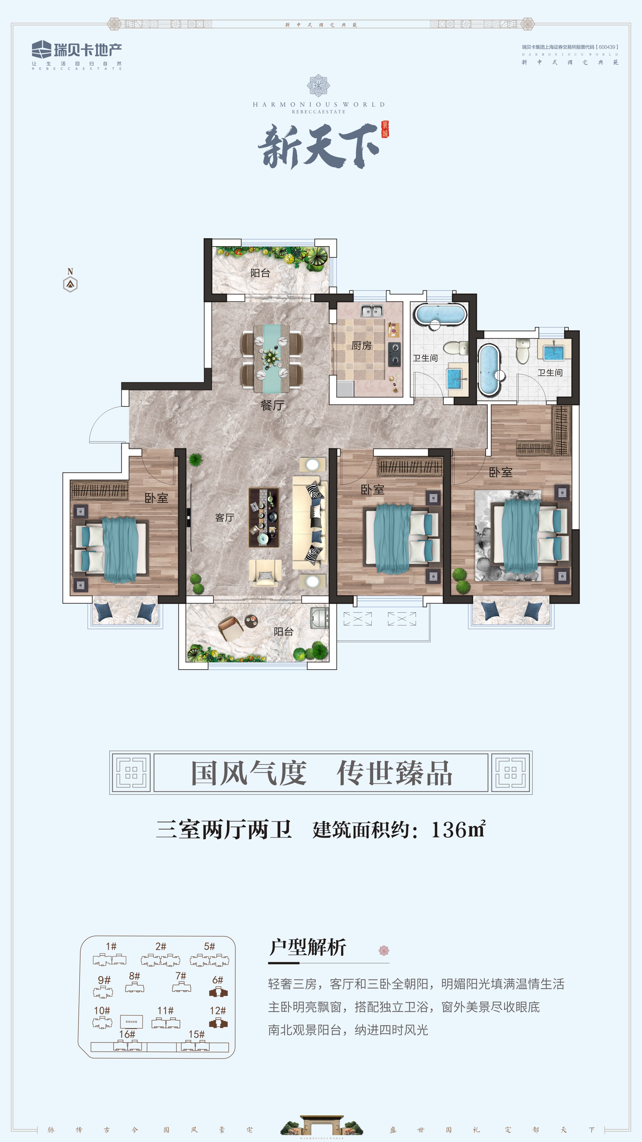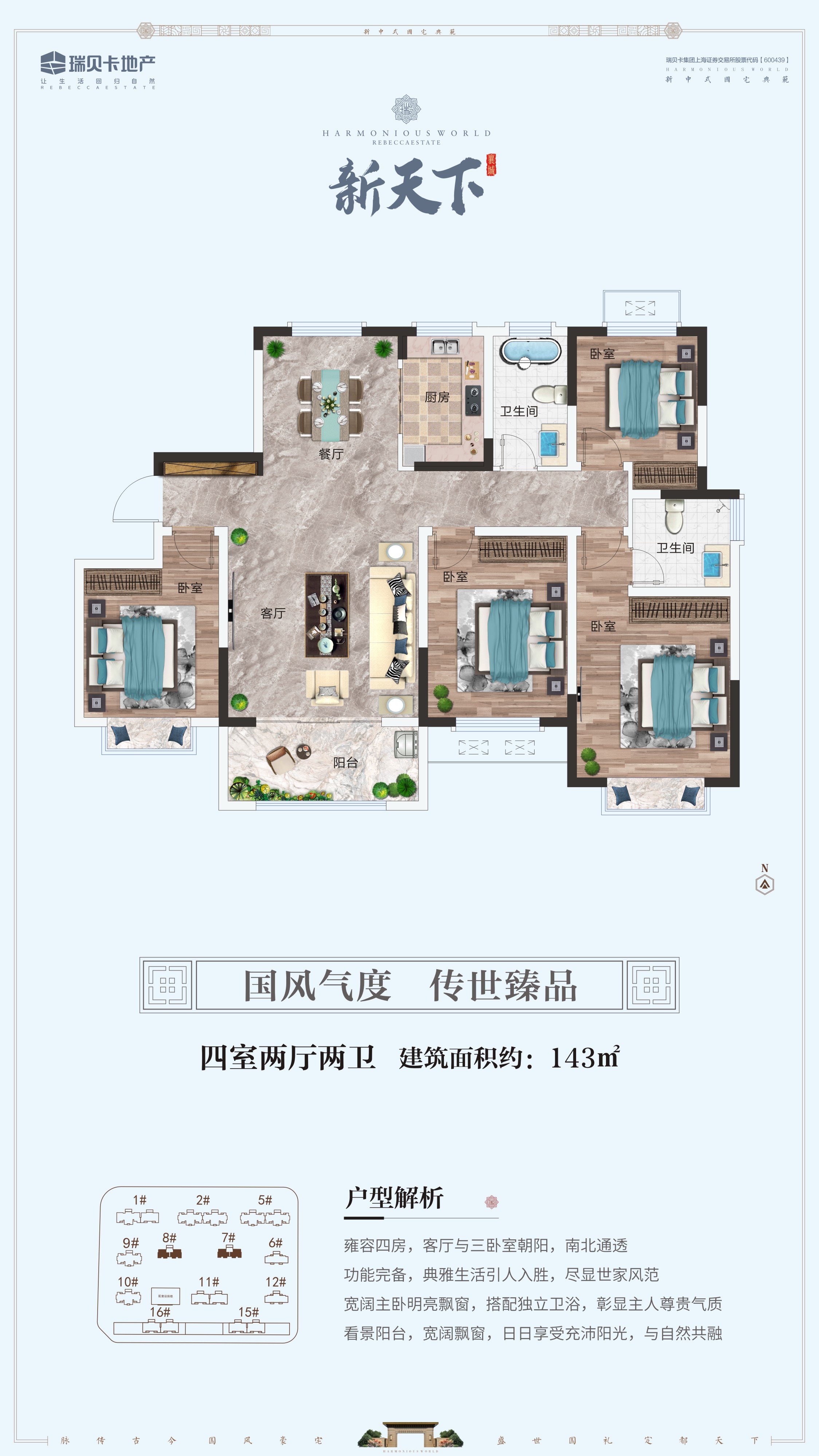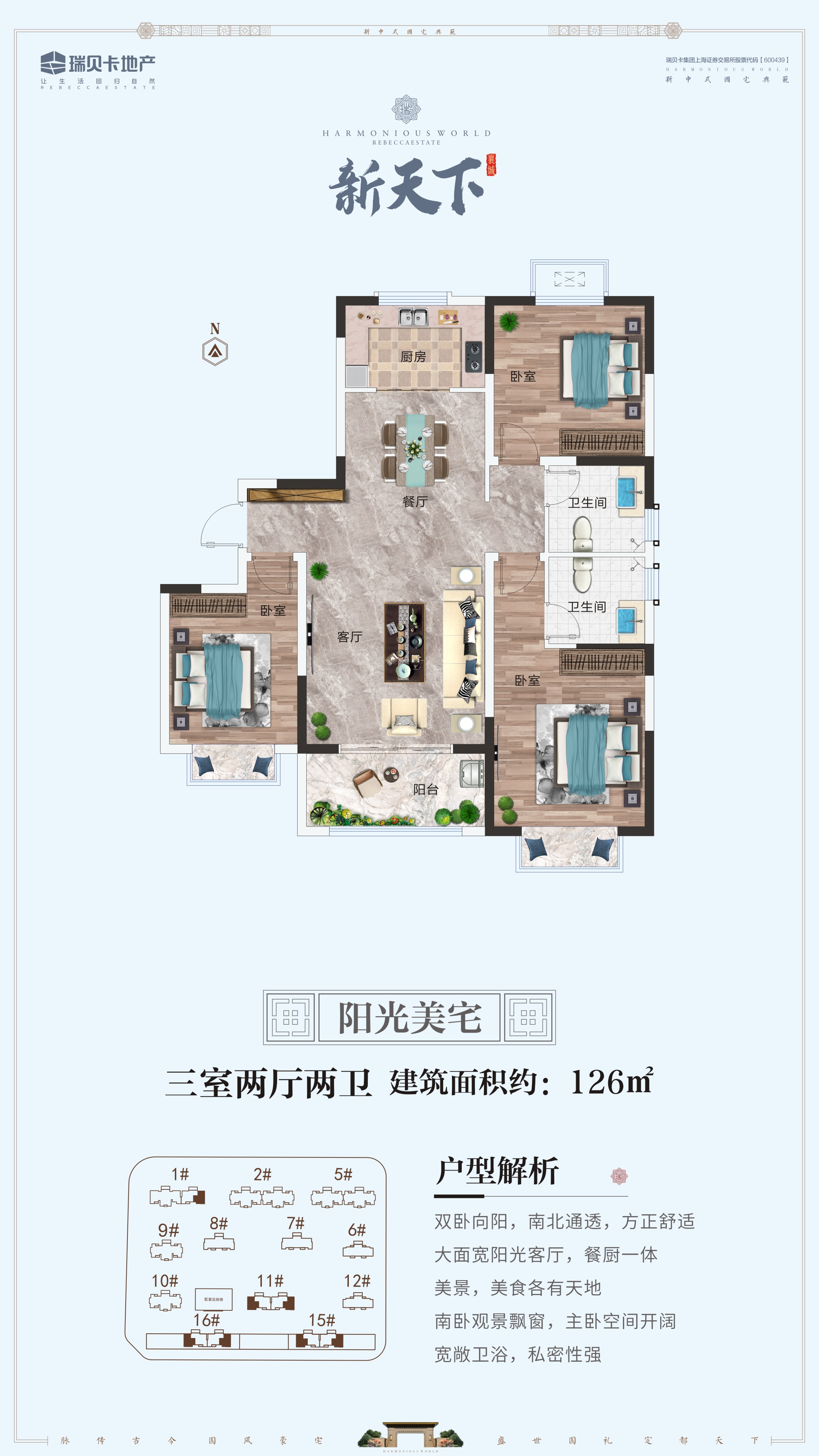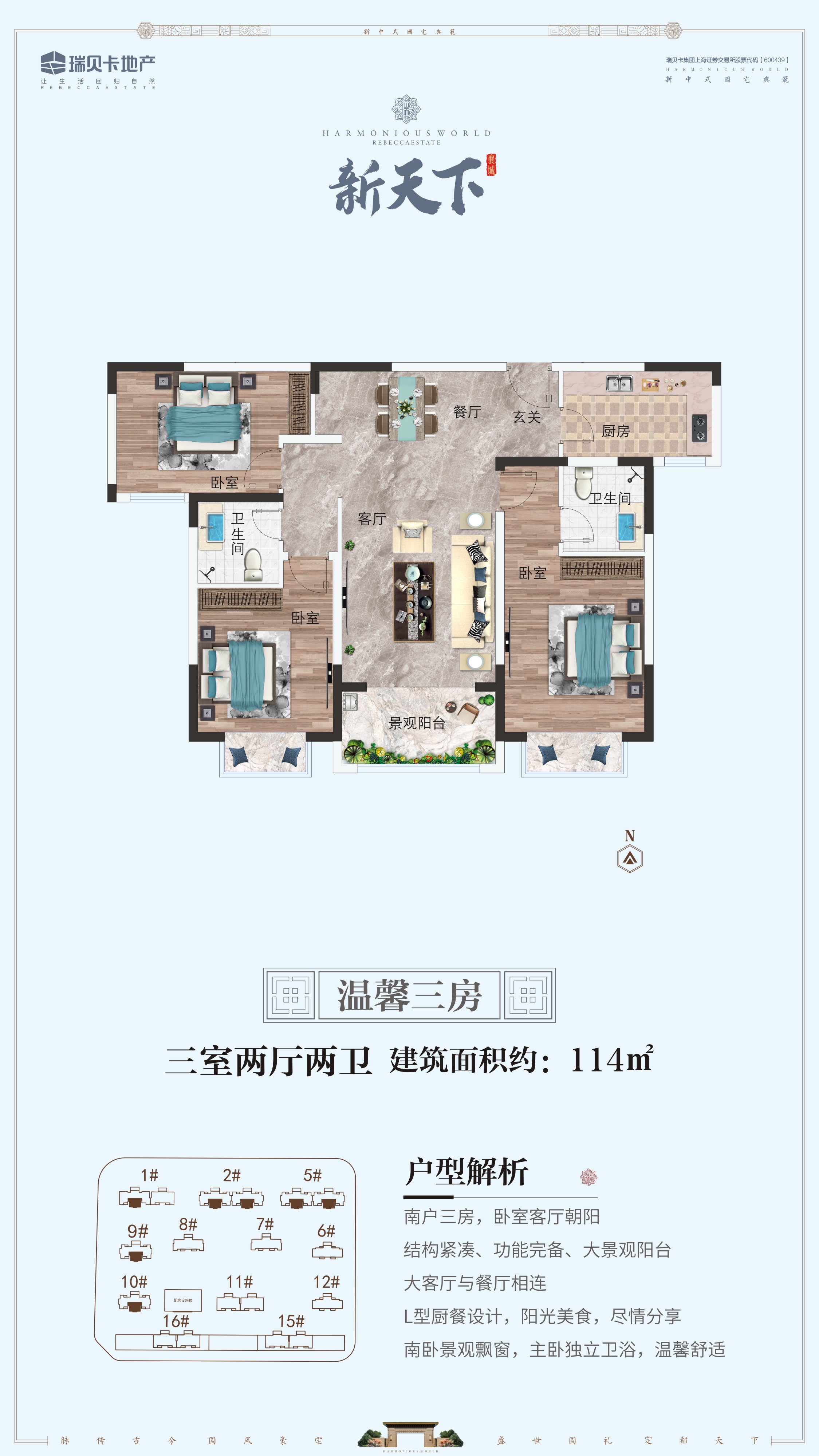 首頁 > 地產(chǎn)力作 > 襄城縣項(xiàng)目襄城瑞貝卡新天下是河南瑞貝卡地產(chǎn)在襄城的第四個(gè)樓盤。瑞貝卡地產(chǎn)進(jìn)駐襄城12年來,相繼開發(fā)了家天下、和天下、興天下3個(gè)高檔社區(qū),服務(wù)數(shù)萬業(yè)主。 2019年,推出天下系扛鼎之作——新天下,該項(xiàng)目位于襄城縣中軸百寧大道東側(cè),文昌路北側(cè),占地約150畝,超低1.8容積率,綠地率37%,全17層建筑,規(guī)劃戶型面積區(qū)間115—142平米。整個(gè)小區(qū)采用圍合式布局,新中式風(fēng)格建筑,中式園林景觀,盡可能的保證每家每戶采光和通風(fēng)。